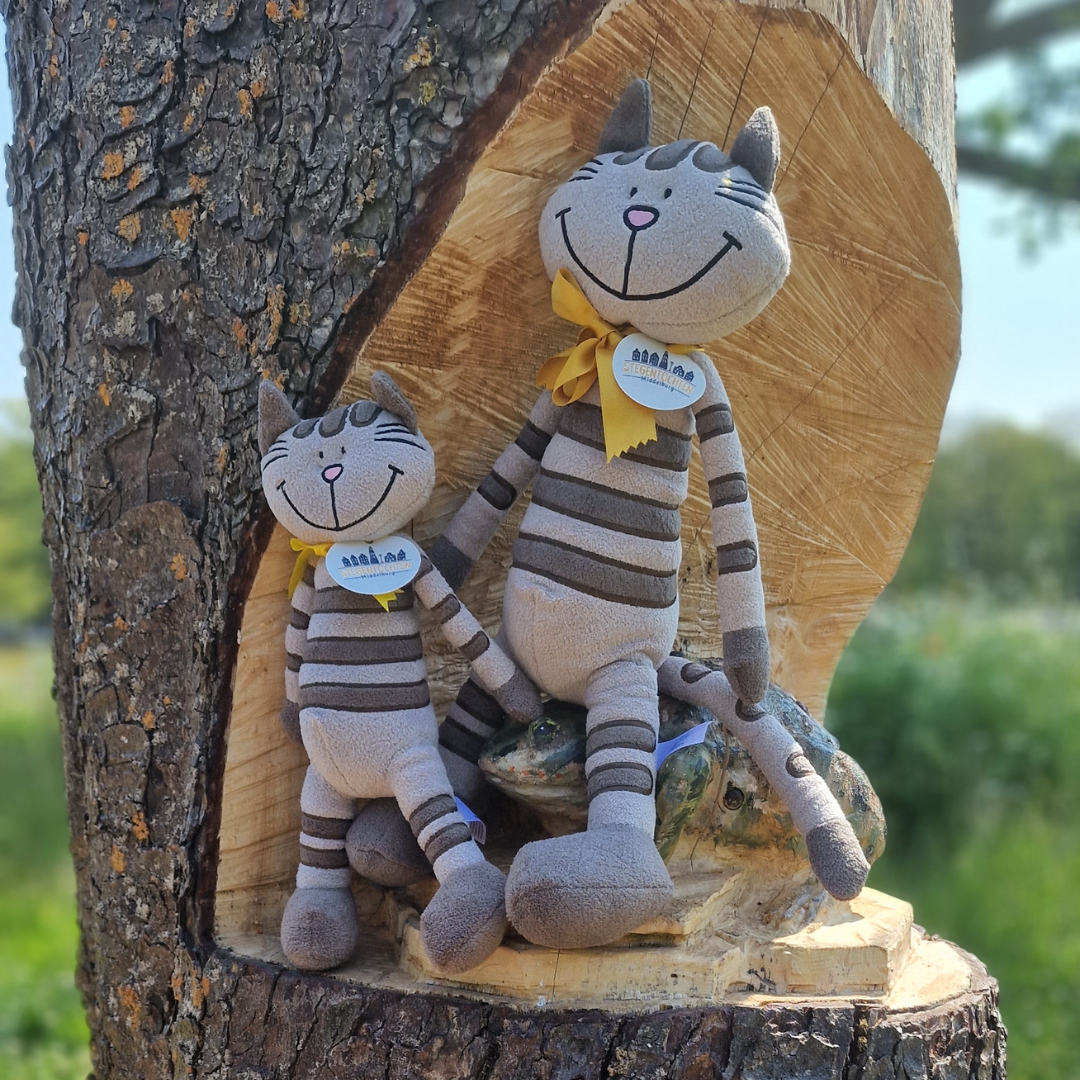 De bekendste Steegtijger is ‘Spahr’ (eigenlijk ‘Spar’ maar met een ‘h’ klinkt voornamer). Zomer en winter, mooi of slecht weer, komt hij je begroeten in de steegjes van Middelburg. Meestal met een verwelkomend kopje, soms wat knorrig maar altijd nieuwsgierig neerkijkend op de Stegentochten-lopers. Deze Spahr houdt van knuffelen. Geef hem een eervol plekje bij jullie thuis.